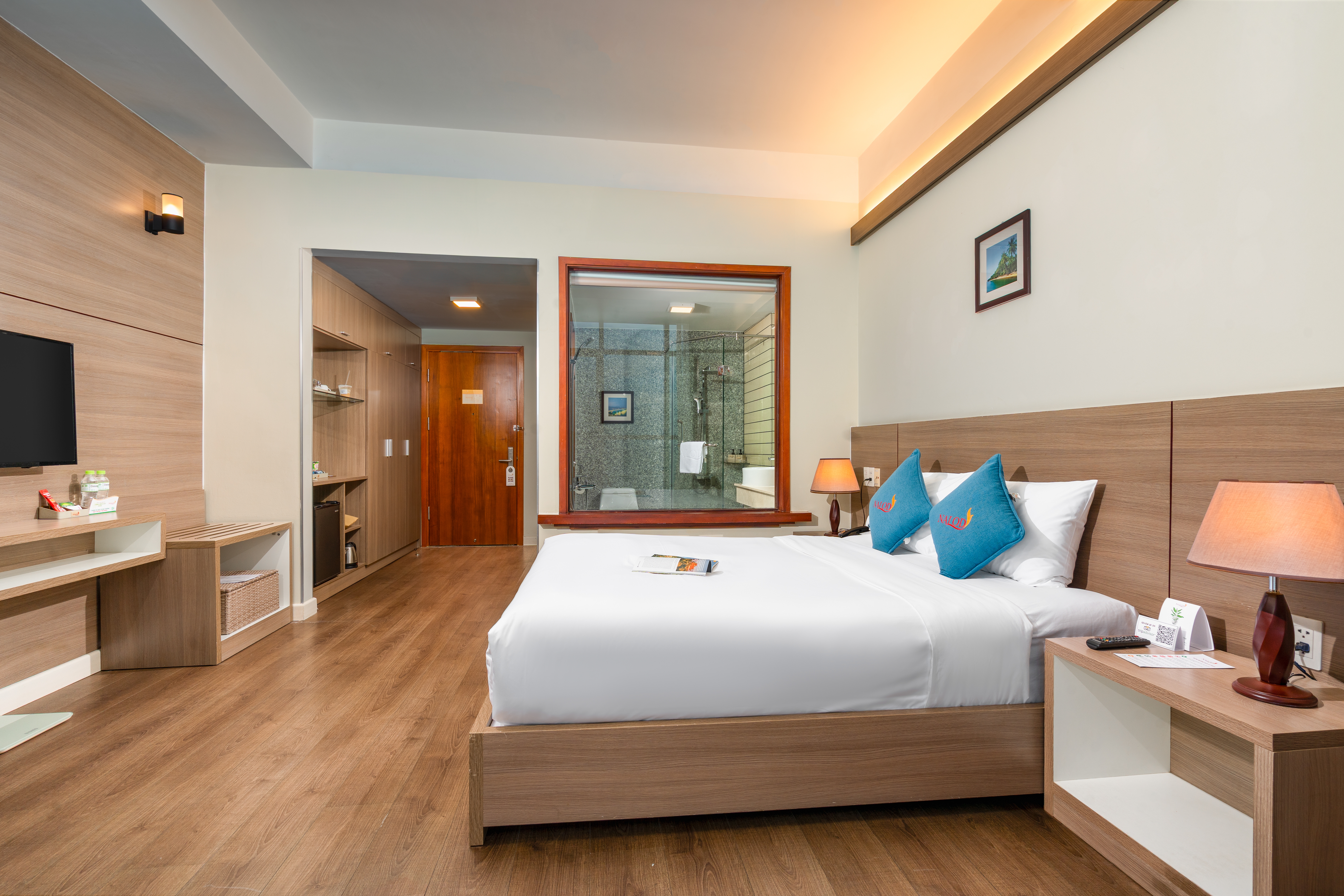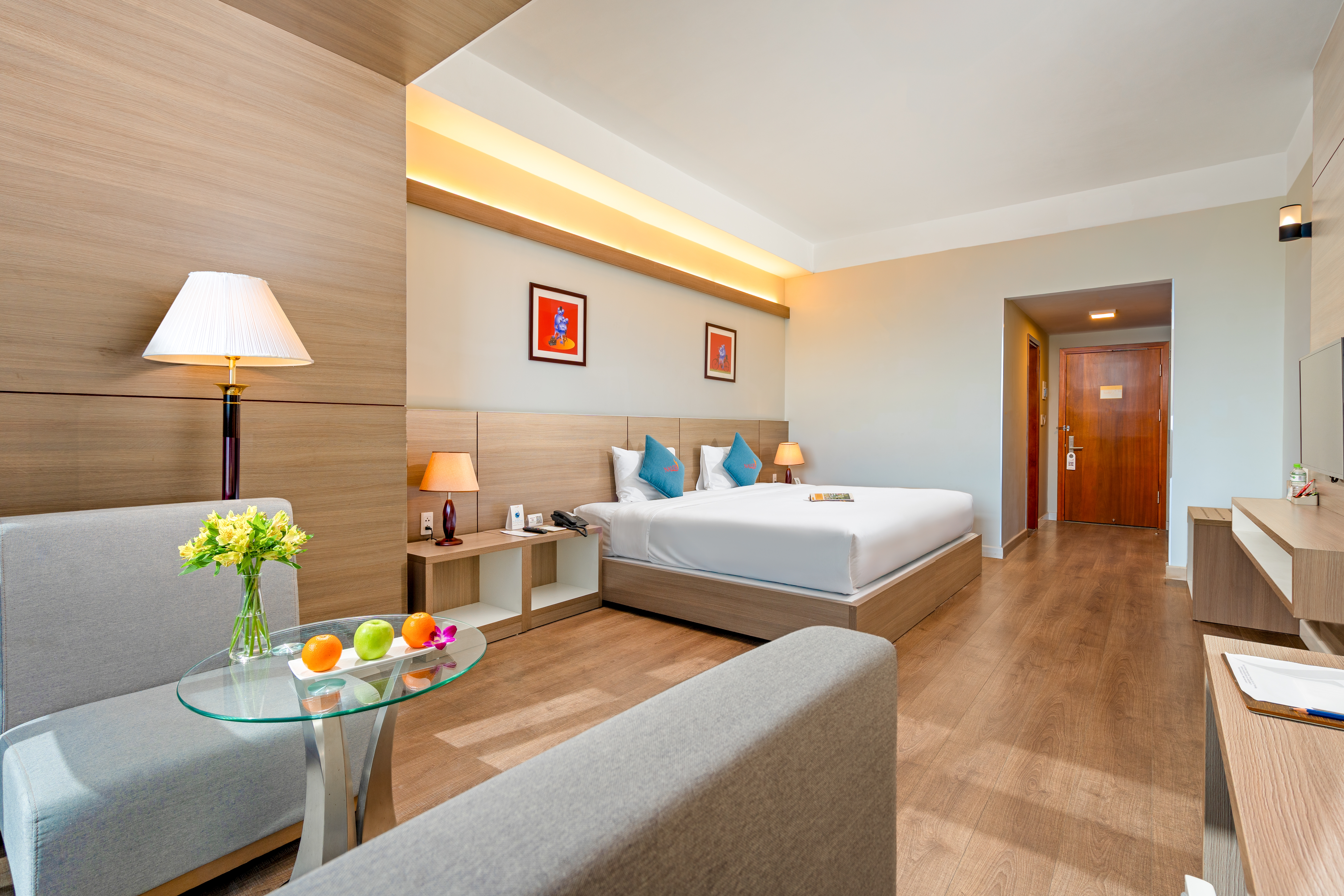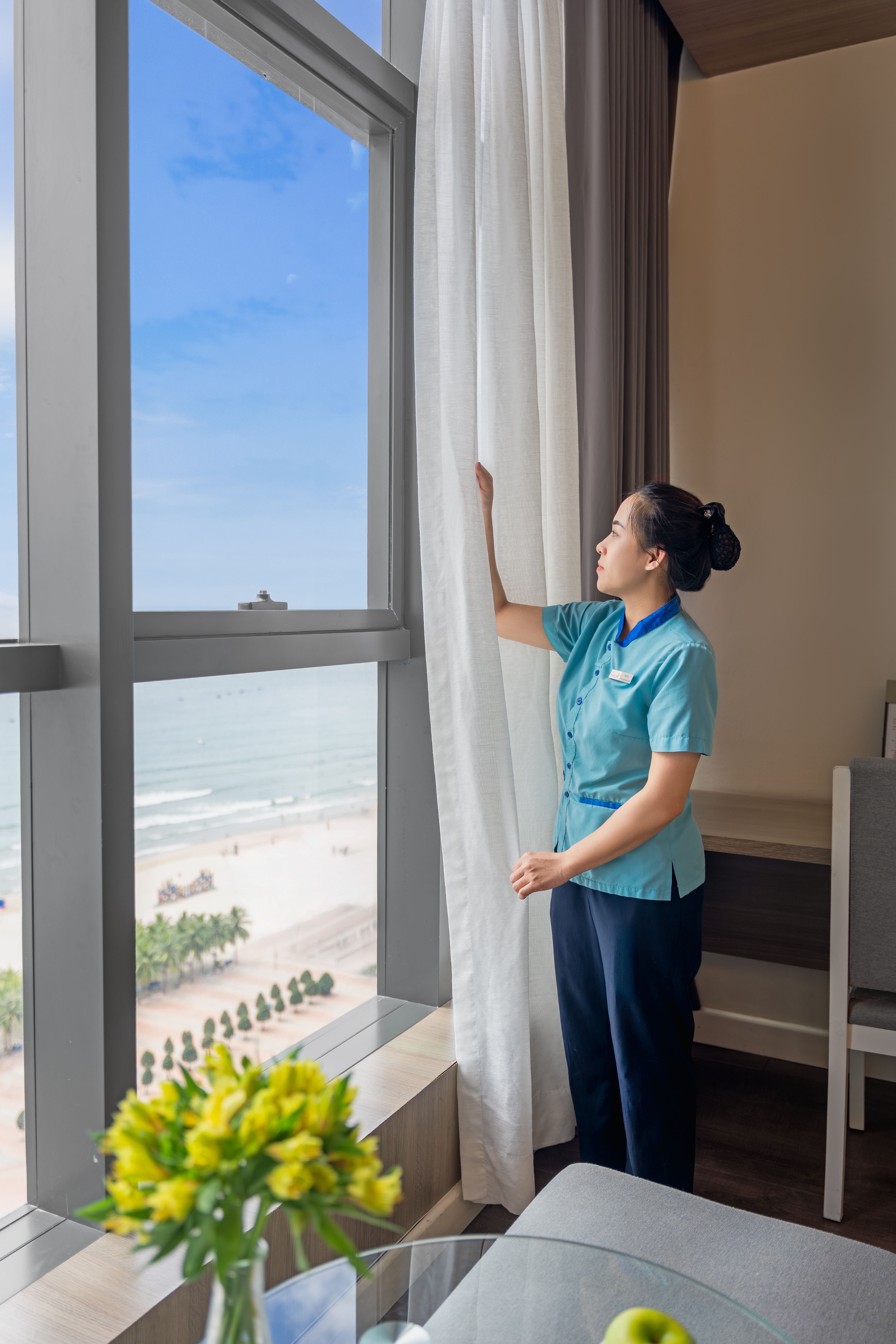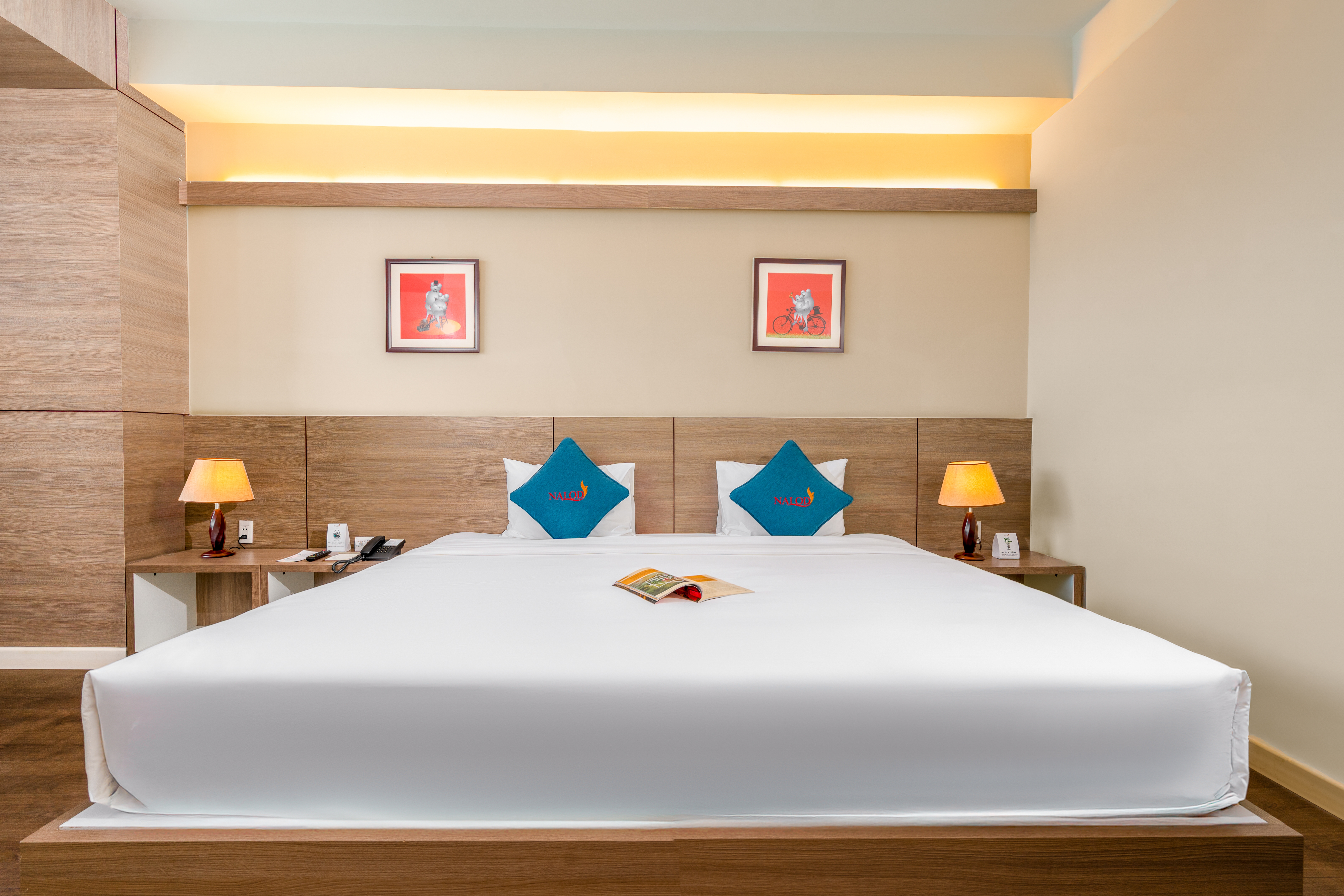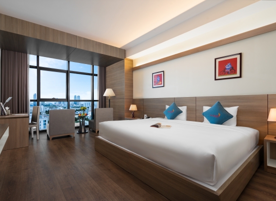 • Vị trí thuận tiện: Khách sạn chỉ cách Cầu Sông Hàn và Cầu khóa tình yêu 1,9 km, và cách Sân bay Quốc tế Đà Nẵng 6 km, giúp việc di chuyển tham quan vô cùng thuận lợi.