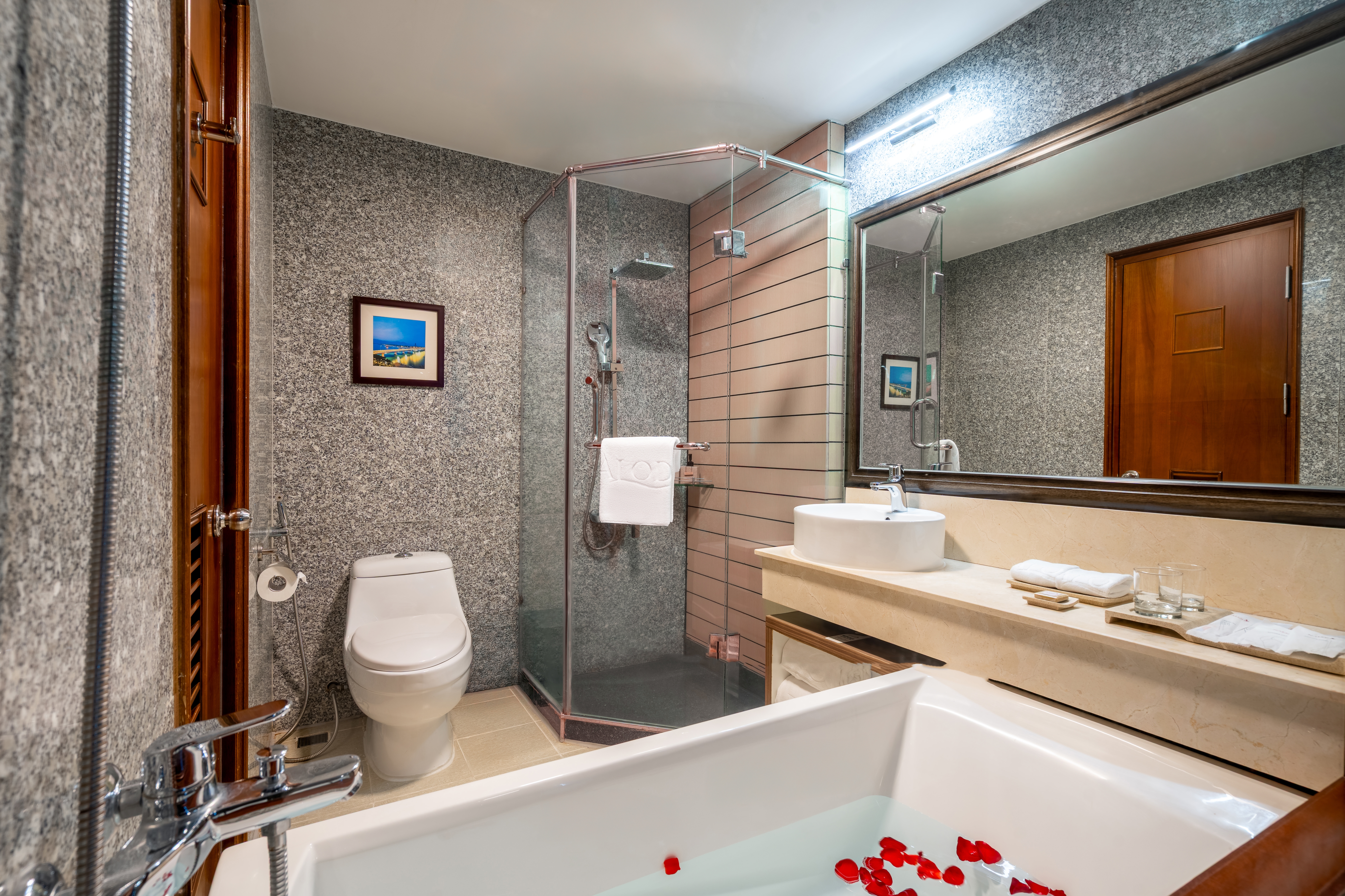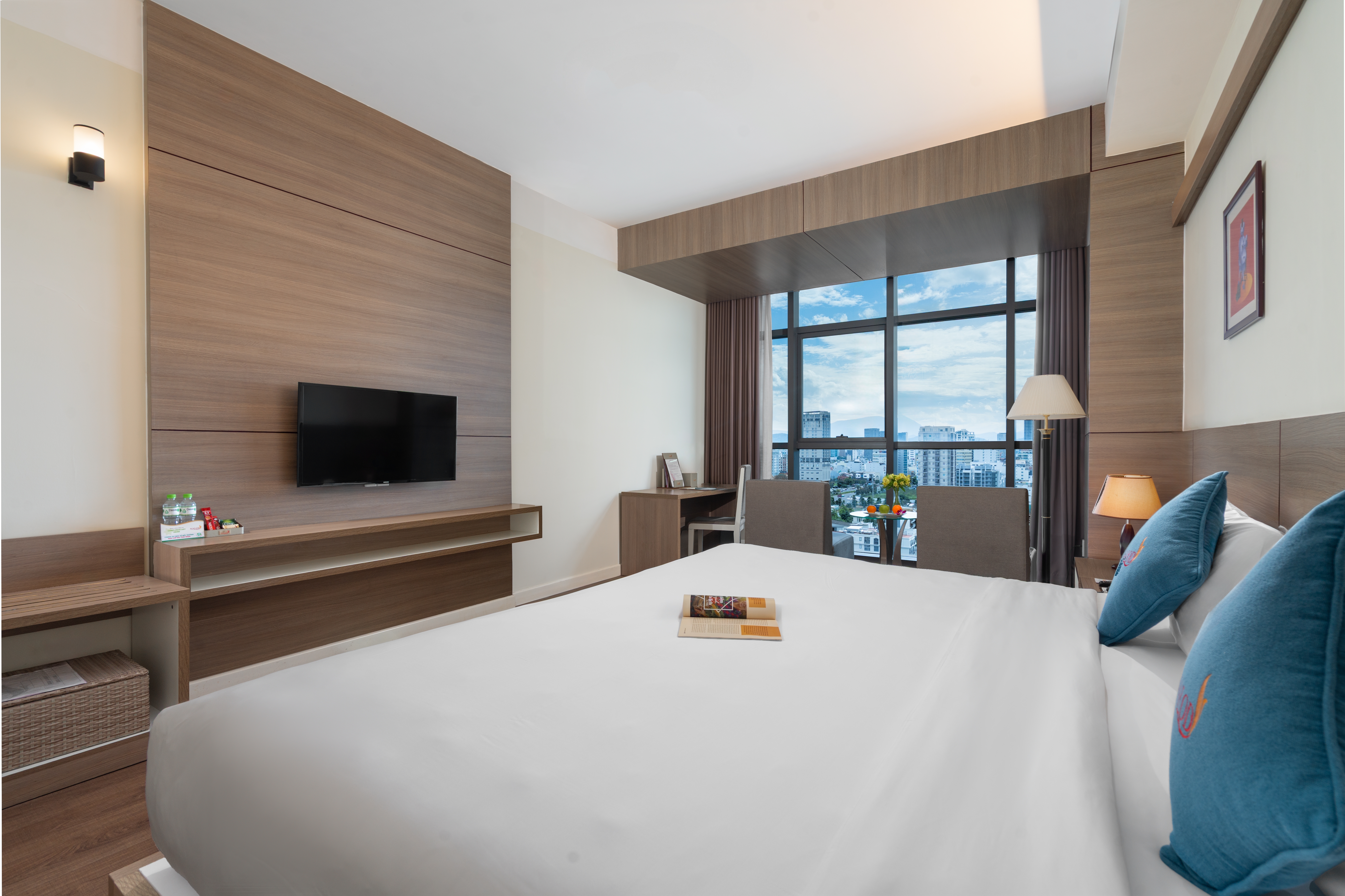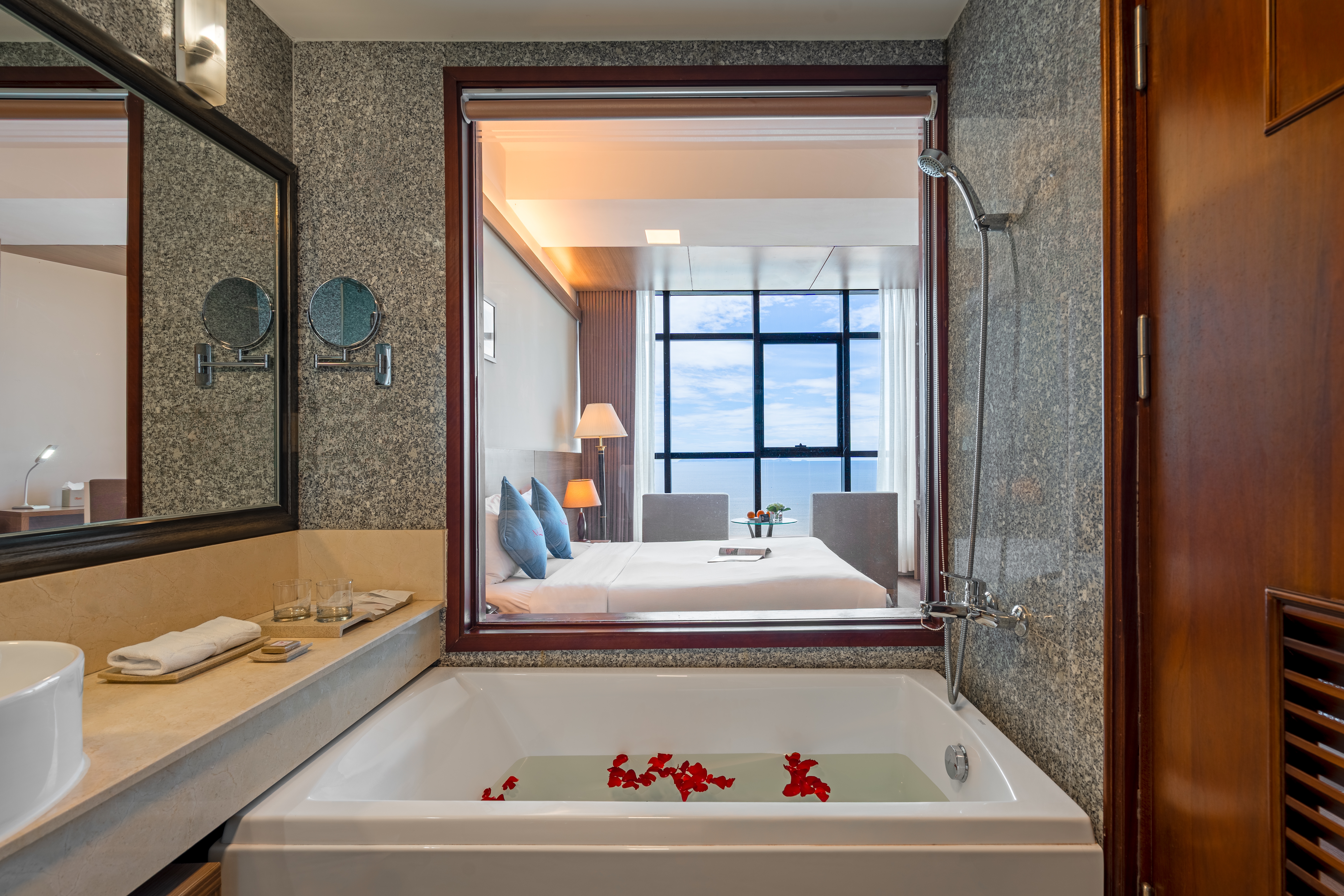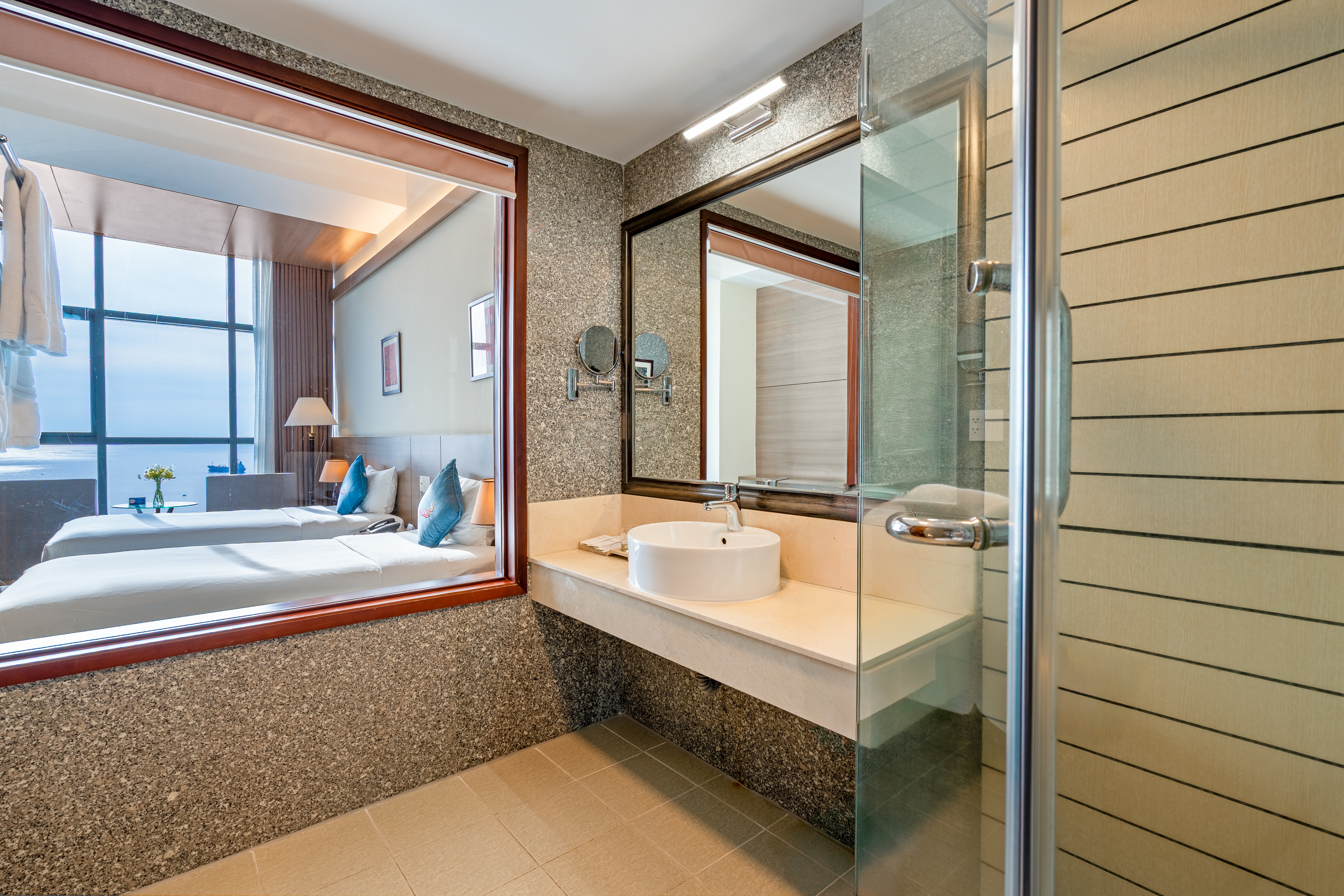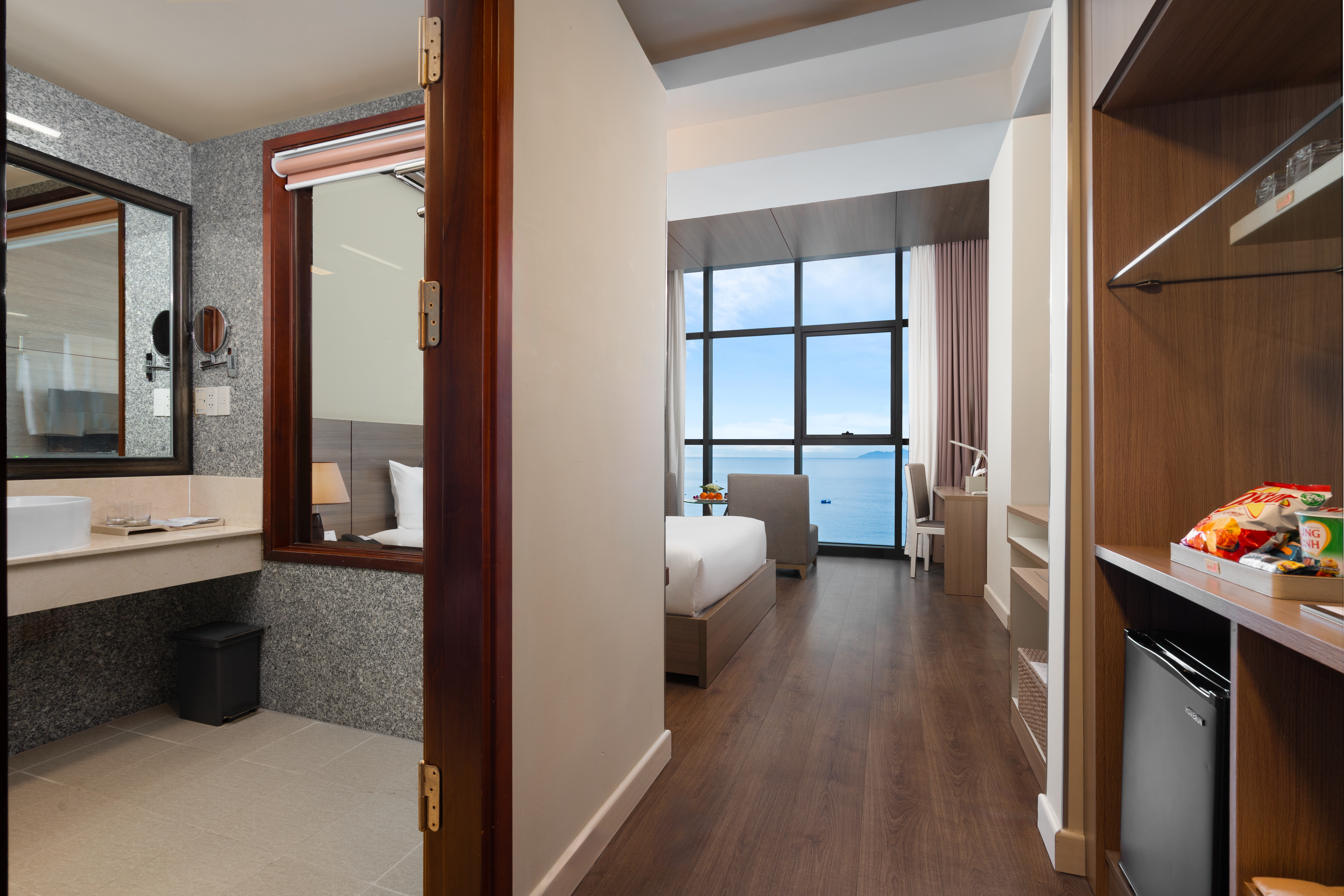 • Tiện nghi phòng ở: Mỗi phòng nghỉ là một không gian riêng tư sang trọng, được trang bị đầy đủ máy lạnh, TV màn hình phẳng và truyền hình cáp. Một số hạng phòng sở hữu khu vực ghế ngồi êm ái và tầm nhìn ngoạn mục hướng biển hoặc thành phố. Phòng tắm riêng đi kèm bồn tắm hoặc vòi sen, sẵn sàng áo choàng tắm và dép đi trong nhà để mang lại sự thoải mái tối đa.